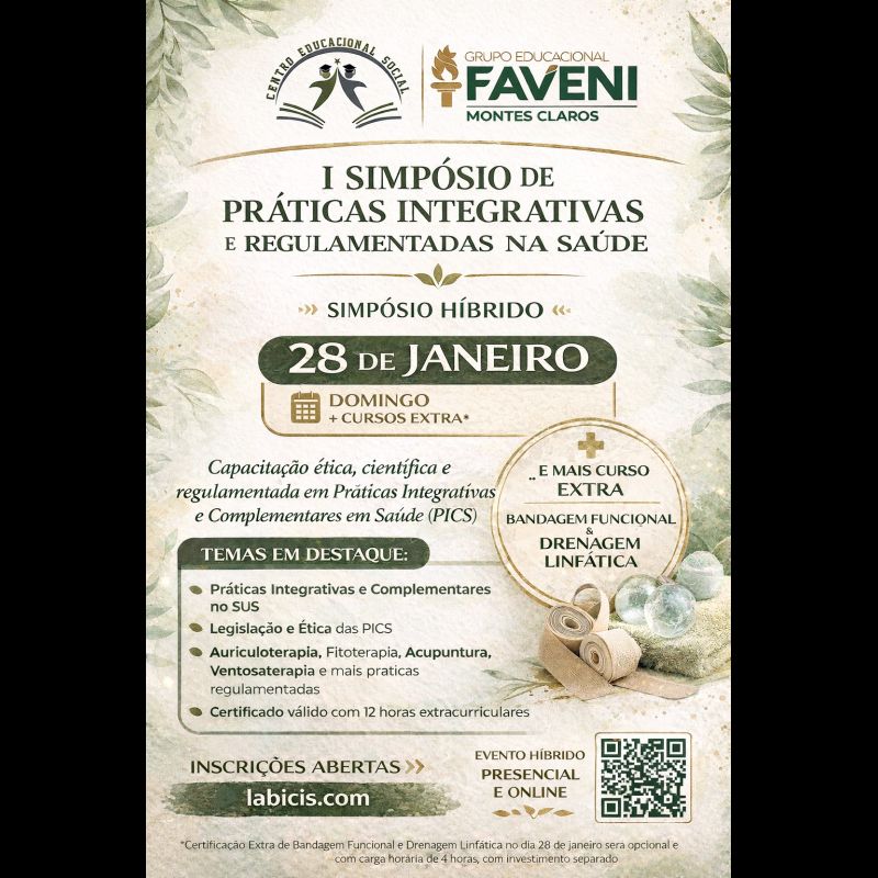 O Centro Educacional Social (CES) – Montes Claros promove um simpósio voltado à formação ética, científica e regulamentada nas Práticas Integrativas e Complementares em Saúde (PICS), com foco na atuação profissional segura e baseada em evidências.